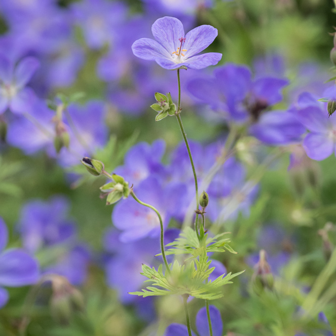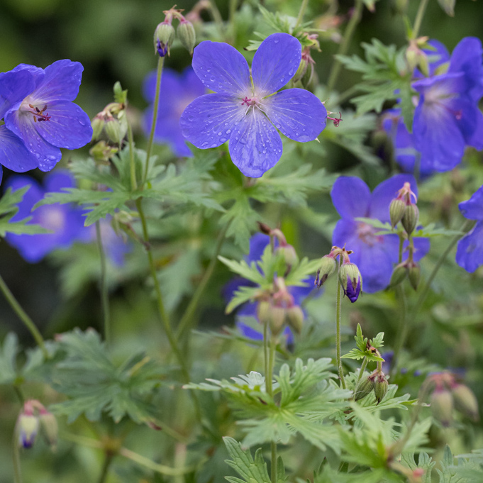 Bodziszek himalajski posiada kępiasty pokrój, szybko rozrasta się dzięki krótkim rozłogom i dorasta do 50 cm wysokości. Łodygi i ogonki liściowe ma słabo, gruczołkowato owłosione. Liście na długich ogonkach, głęboko klapowane są żywo zielone, ciekawie przebarwiając się jesienią. Kwiaty niebieskie, z ciemniejszym żyłkowaniem pojawiają się od czerwca do sierpnia. Bodziszek himalajski nadaje się na rabaty oraz do okrywania powierzchni na stanowiskach słonecznych, umiarkowanie wilgotnych. Znosi do pewnego stopnia okresowe susze i lekki półcień.