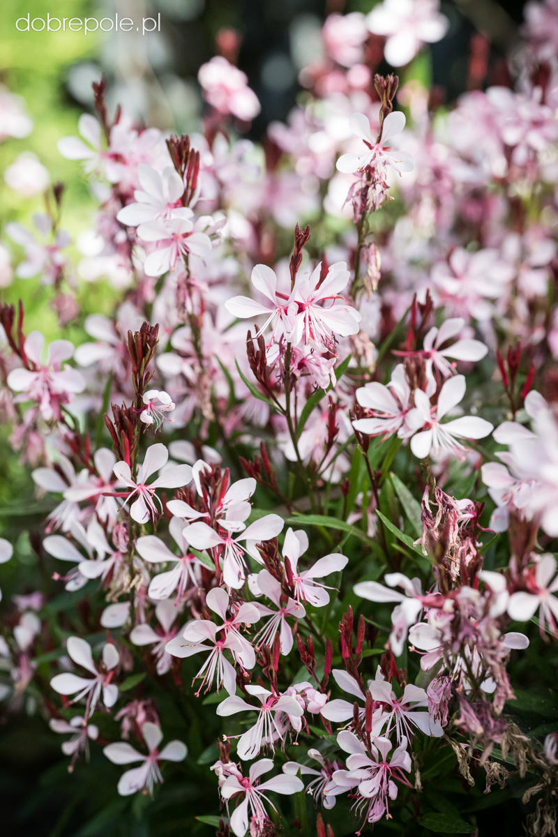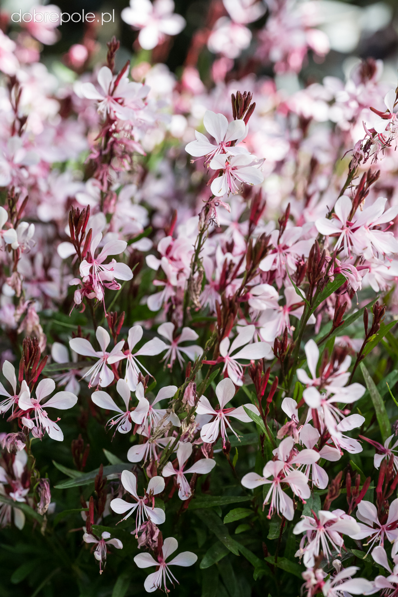 Gaura Lindheimera tworzy kępy nierozgałęzionych pędów. W zależności od odmiany rośliny osiągają wysokość od 40-100 cm. Na szczytach pędów znajdują się groniaste, różowe lub białe kwiatostany o długości 20-80 cm. Kwiaty do 3,5 cm wielkości, mają dwuboczną symetrię i charakterystyczne dla gaury długie pylniki. Roślina zachwyca długim okresem kwitnienia. Od czerwca do października podziwiać można jej miododajne, kłosowate kwiatostany. Gaura stale tworzy nowe kwiatostany i wytwarza nowe pędy. W miarę przekwitania kwiaty przebarwiają się, a końcówki kwiatostanów zaczynają się ogałacać z przekwitniętych kwiatków. Ze względu na bardzo długi okres kwitnienia gaura jest niezastąpioną rośliną rabatową. Fantastycznie komponuje się z niskimi i wyższymi trawami. Warto w jej sąsiedztwie wysadzać rośliny o dużych liściach np. żurawki lub hosty. Gaury nadają się na kwiat cięty. Wymagają lekkich, piaszczystych gleb znajdujących się w słonecznym, ciepłym, umiarkowanie wilgotnym miejscu. Roślina jest wrażliwa na gromadzenie się wody u jej nasady, dlatego w trakcie sadzenia zaleca się do dołka wsypać żwir, wymieszać go z ziemią i roślinę posadzić na lekkim podwyższeniu. Aby mieć pewność, że roślina przetrwa zimę, warto okryć ją gałązkami drzew iglastych, słomą, bądź innym podobnym materiałem.