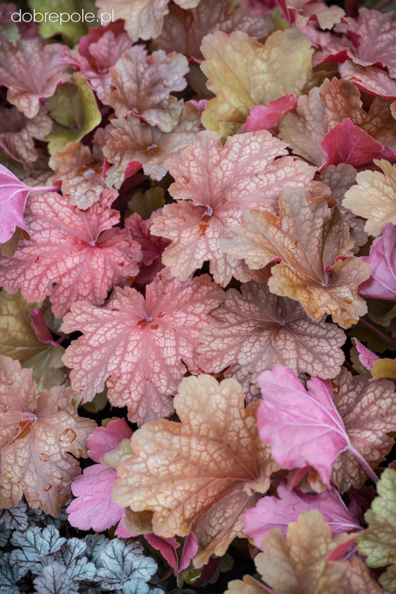 Żurawki - odmiany mieszańcowe to niezwykle atrakcyjne, kępiaste byliny, w naszych warunkach częściowo zimozielone. Maksymalnie osiągają wysokość 40-50 cm. Sercowate i klapowane liście w zależności od odmiany mają różne zabarwienie: zielone, żółte, pomarańczowe, czerwone, purpurowe, fioletowe, ze srebrnym nalotem lub z różnymi dekoracyjnymi wzorami. W ciągu sezonu wegetacyjnego u niektórych odmian barwa liści ulega ciągłej zmianie. Latem ponad liśćmi na długich, cienkich pędach pojawiają się kwiatostany o kwiatach białych, kremowych, różowych lub czerwonych. Po kwitnieniu należy przyciąć pędy kwiatostanowe. W zależności od odmiany są one mniej lub bardziej efektowne. Najbardziej dekoracyjne kwiaty występują u roślin o zielonym zabarwieniu liści. Żurawki najlepiej wyglądają, gdy są posadzone w dużych skupiskach na rabatach, w nasadzeniach miejskich, w ogrodach skalnych lub w pojemnikach na balkonach i tarasach. Świetnie prezentują się jako rośliny obwódkowe. Zarówno liście jak i kwiaty nadają się do bukietów. W ogrodach najczęściej sadzi się je z innymi bylinami np. kocimiętkami, szałwią omszoną, wiesiołkami. Żurawki wymagają gleby świeżej, próchnicznej, żyznej, umiarkowanie wilgotnej, o odczynie lekko kwaśnym do obojętnego. Miejsce uprawy powinno być najlepiej półcieniste, rośliny nie znoszą prażącego słońca. W północno-wschodnich rejonach Polski podczas bezśnieżnych zim żurawki należy przykryć przewiewnym materiałem, np. gałązkami drzew iglastych, korą lub agrowłókniną. Wiosną należy usunąć uszkodzone liście.
