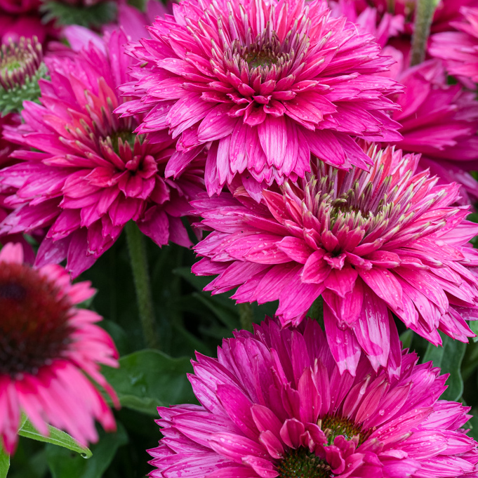 Rodzaj jeżówka obejmuje wiele gatunków i odmian wywodzących się od Echinacea purpurea, E. pallida, E. paradoxa, E. simulata oraz bardzo liczną, niezwykle atrakcyjną grupę odmian mieszańcowych. Wszystkie rośliny posiadają sztywno, wzniesione pędy, średnia wysokość tej byliny to 50-80 cm. Mimo tej wysokości jeżówka nie ma tendencji do pokładania się i w większości przypadków nie wymaga podparcia. Jajowate, spiczasto zaostrzone, ostro ząbkowane, ciemnozielone liście osadzone są na długich ogonkach. Cała roślina pokryta jest szorstkimi włoskami. Kwitnie od lipca do października. Wypukłe oczka przypominające kolce jeża, otoczone są kwiatami języczkowymi. W ogrodach uprawia się barwne odmiany, które różnią się terminem kwitnienia, wysokością, kształtem i kolorem kwiatów. Usuwanie przekwitniętych kwiatostanów przedłuża okres kwitnienia, który i tak jest bardzo długi. Jeżówka wabi motyle i pszczoły, a przede wszystkim przykuwa nasz wzrok pięknym, obfitym kwitnieniem oraz ciepłymi i żywymi barwami. Niektóre odmiany jeżówki pachną ("Purple Emperor" "Aloha", "Big Kahna", Tangerine Dream".) Zaschnięte kwiatostany tej rośliny przyozdabiają ogród również w okresie jesienno-zimowym. Echinacea jest jedną z ważniejszych bylin rabatowych w ogrodach, bardzo dobrze sprawdza się również na kwietnikach miejskich w mniejszych lub większych grupach, a także w założeniach naturalistycznych. Kwiaty nadają się do cięcia i długo pozostają dekoracyjne w wazonie. Niższe odmiany mogą być uprawiane w pojemnikach. Roślina bardzo dobrze komponuje się z innymi bylinami, a także z trawami np. miskantami, rozplenicą, ostnicą. Najlepiej sprawdza się na glebach dość żyznych, umiarkowanie wilgotnych. Preferuje stanowiska słoneczne.