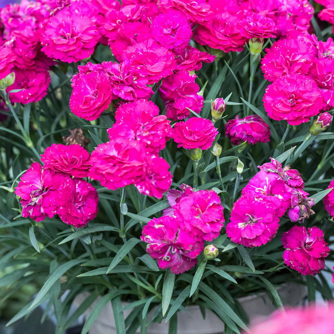 Goździk pierzasty tworzy gęste poduszki niebiesko-zielonych liści wysokości 15 cm. Podstawy płożących się łodyg mają skłonność do drewnienia. Pędy kwiatowe goździka pierzastego wypuszczają jeden bądź dwa kwiaty. Kwiaty pachnące, pojedyncze lub pełne w zależności od odmiany białe, różowe w odcieniach, łososiowe, czerwone, z oczkiem lub bez, zaobserwować je można od maja do lipca. Po przekwitnięciu wskazane jest mocne przycięcie rośliny. Goździk stosowany w ogródkach skalnych oraz na rabatach. Nadaje się na kwiaty cięte. Goździk pierzasty powinien być sadzony na glebie przepuszczalnej, nieco gliniastej, na stanowiskach słonecznych i umiarkowanie wilgotnych. Dobrze znosi suszę.