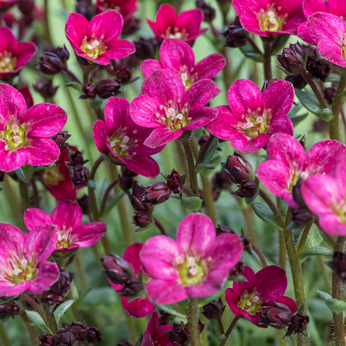 Skalnica Arendsa obejmuje liczne odmiany ogrodowe. Rośliny tworzą zimozielone poduszki złożone z rozetek średnicy 4-5 cm. Liście klinowate, głęboko wcinane, soczyście zielone. Kwiaty w zależności od odmiany średnicy do 1, 5 cm koloru białego, różowego w odcieniach, czerwonego osadzone są po kilka na łodyżkach w groniastych kwiatostanach, umieszczonych tuż nad liśćmi lub na łodyżkach wysokości od 10-20 cm. Pojawiają się w miesiącach wiosennych i nadają się do cięcia. Ciekawostką u niektórych odmian jest fakt, że z czerwonych pąków wyrastają np. białe kwiaty. W miarę przekwitania kolorowe płatki kwiatów bledną, a łodygi nieco się wydłużają. Bylina bardzo ciekawie prezentuje się w ogrodach skalnych, nadaje się również na obwódki. Nasłonecznienie znosi pod warunkiem, że gleba jest stale umiarkowanie wilgotna.