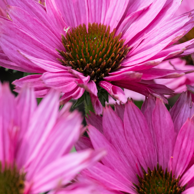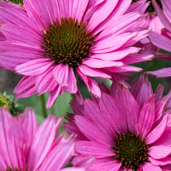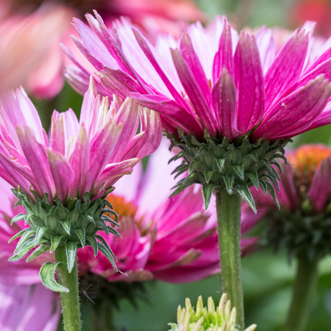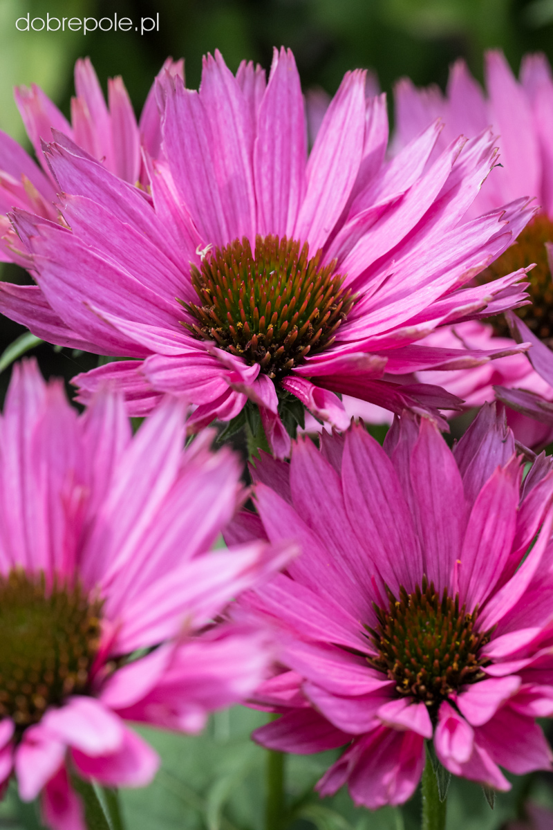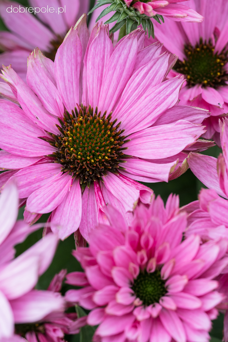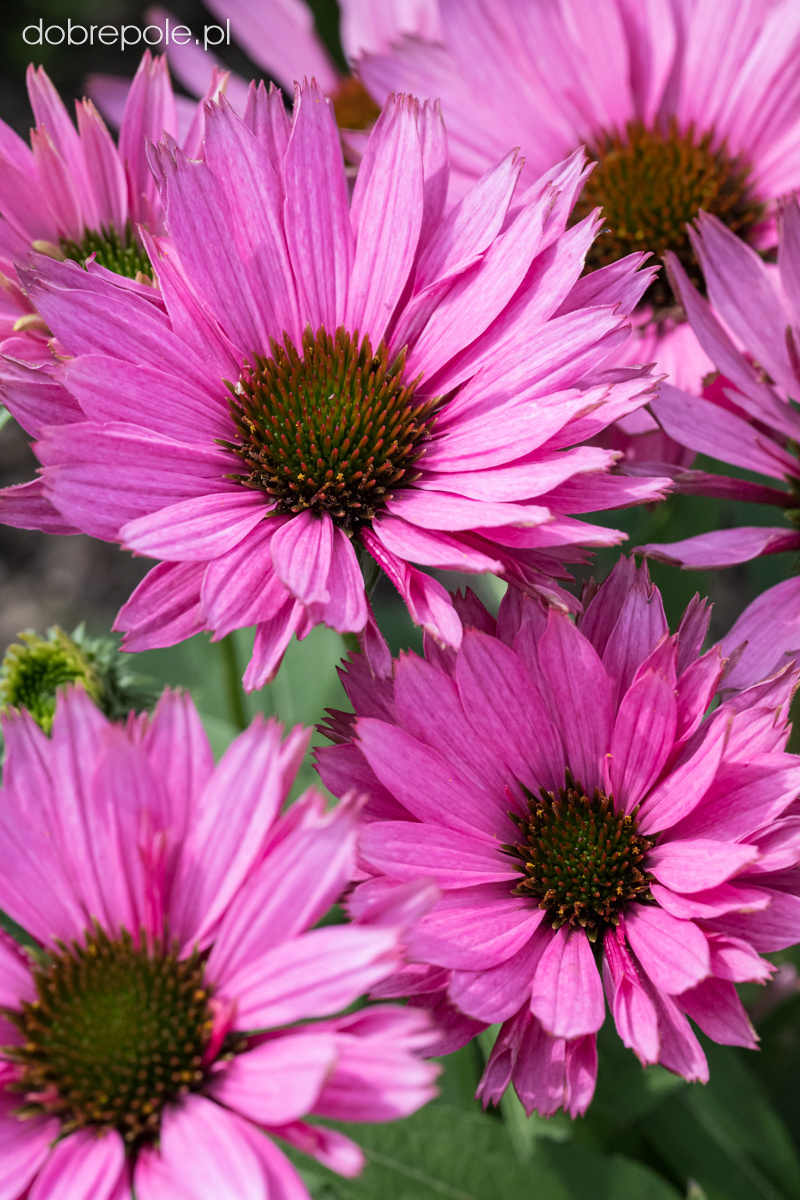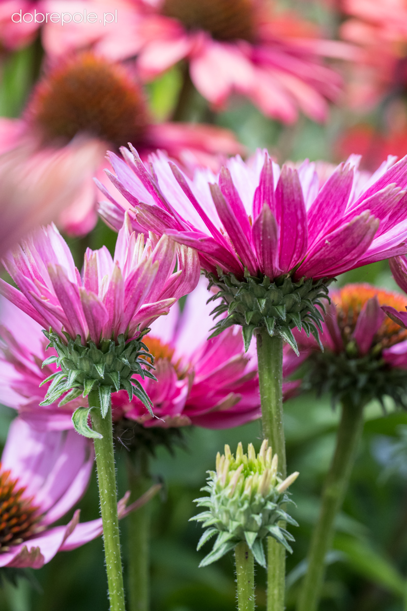 Rodzaj jeżówka obejmuje wiele gatunków i odmian wywodzących się od Echinacea purpurea, E. pallida, E. paradoxa, E. simulata oraz bardzo liczną, niezwykle atrakcyjną grupę odmian mieszańcowych. Wszystkie rośliny posiadają sztywno, wzniesione pędy, średnia wysokość tej byliny to 50-80 cm. Mimo tej wysokości jeżówka nie ma tendencji do pokładania się i w większości przypadków nie wymaga podparcia. Jajowate, spiczasto zaostrzone, ostro ząbkowane, ciemnozielone liście osadzone są na długich ogonkach. Cała roślina pokryta jest szorstkimi włoskami. Kwitnie od lipca do października. Wypukłe oczka przypominające kolce jeża, otoczone są kwiatami języczkowymi. W ogrodach uprawia się barwne odmiany, które różnią się terminem kwitnienia, wysokością, kształtem i kolorem kwiatów. Usuwanie przekwitniętych kwiatostanów przedłuża okres kwitnienia, który i tak jest bardzo długi. Jeżówka wabi motyle i pszczoły, a przede wszystkim przykuwa nasz wzrok pięknym, obfitym kwitnieniem oraz ciepłymi i żywymi barwami. Niektóre odmiany jeżówki pachną ("Purple Emperor" "Aloha", "Big Kahna", Tangerine Dream".) Zaschnięte kwiatostany tej rośliny przyozdabiają ogród również w okresie jesienno-zimowym. Echinacea jest jedną z ważniejszych bylin rabatowych w ogrodach, bardzo dobrze sprawdza się również na kwietnikach miejskich w mniejszych lub większych grupach, a także w założeniach naturalistycznych. Kwiaty nadają się do cięcia i długo pozostają dekoracyjne w wazonie. Niższe odmiany mogą być uprawiane w pojemnikach. Roślina bardzo dobrze komponuje się z innymi bylinami, a także z trawami np. miskantami, rozplenicą, ostnicą. Najlepiej sprawdza się na glebach dość żyznych, umiarkowanie wilgotnych. Preferuje stanowiska słoneczne.