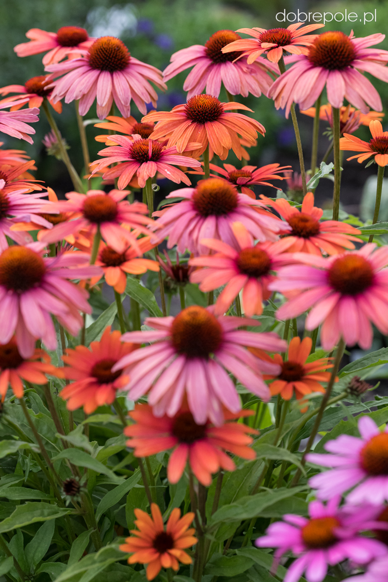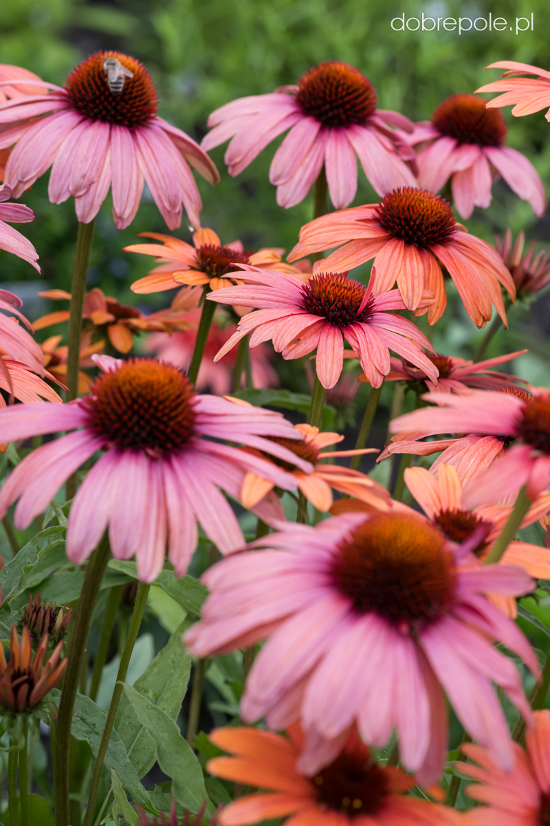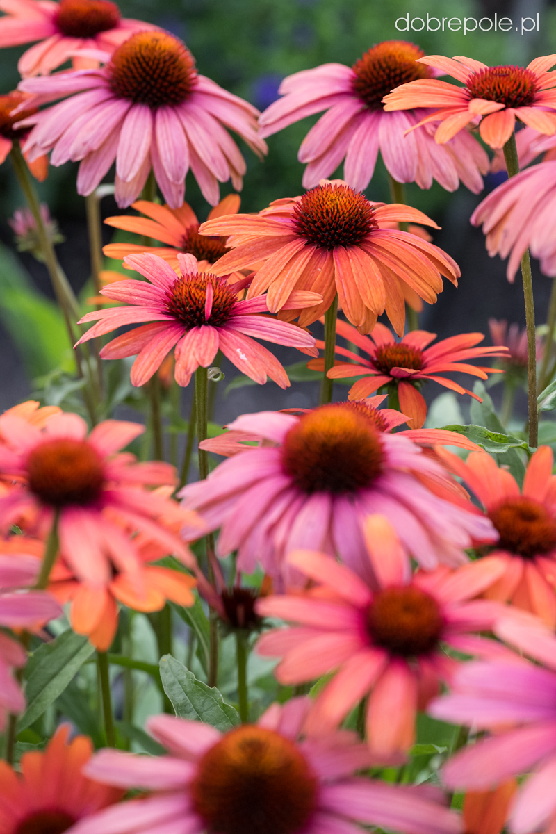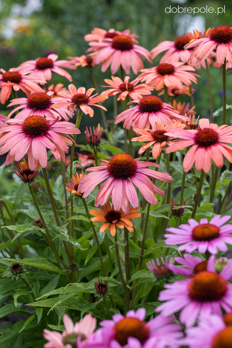 Rodzaj jeżówka obejmuje wiele gatunków i odmian wywodzących się od Echinacea purpurea, E. pallida, E. paradoxa, E. simulata oraz bardzo liczną, niezwykle atrakcyjną grupę odmian mieszańcowych. Wszystkie rośliny posiadają sztywno, wzniesione pędy, średnia wysokość tej byliny to 50-80 cm. Mimo tej wysokości jeżówka nie ma tendencji do pokładania się i w większości przypadków nie wymaga podparcia. Jajowate, spiczasto zaostrzone, ostro ząbkowane, ciemnozielone liście osadzone są na długich ogonkach. Cała roślina pokryta jest szorstkimi włoskami. Kwitnie od lipca do października. Wypukłe oczka przypominające kolce jeża, otoczone są kwiatami języczkowymi. W ogrodach uprawia się barwne odmiany, które różnią się terminem kwitnienia, wysokością, kształtem i kolorem kwiatów. Usuwanie przekwitniętych kwiatostanów przedłuża okres kwitnienia, który i tak jest bardzo długi. Jeżówka wabi motyle i pszczoły, a przede wszystkim przykuwa nasz wzrok pięknym, obfitym kwitnieniem oraz ciepłymi i żywymi barwami. Niektóre odmiany jeżówki pachną ("Purple Emperor" "Aloha", "Big Kahna", Tangerine Dream".) Zaschnięte kwiatostany tej rośliny przyozdabiają ogród również w okresie jesienno-zimowym. Echinacea jest jedną z ważniejszych bylin rabatowych w ogrodach, bardzo dobrze sprawdza się również na kwietnikach miejskich w mniejszych lub większych grupach, a także w założeniach naturalistycznych. Kwiaty nadają się do cięcia i długo pozostają dekoracyjne w wazonie. Niższe odmiany mogą być uprawiane w pojemnikach. Roślina bardzo dobrze komponuje się z innymi bylinami, a także z trawami np. miskantami, rozplenicą, ostnicą. Najlepiej sprawdza się na glebach dość żyznych, umiarkowanie wilgotnych. Preferuje stanowiska słoneczne.