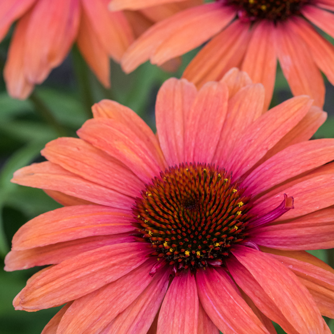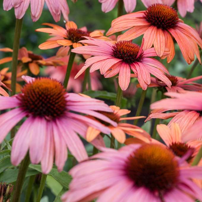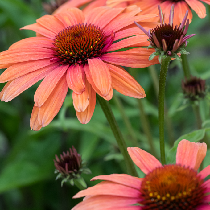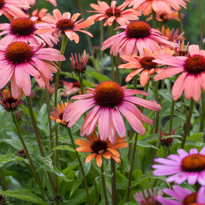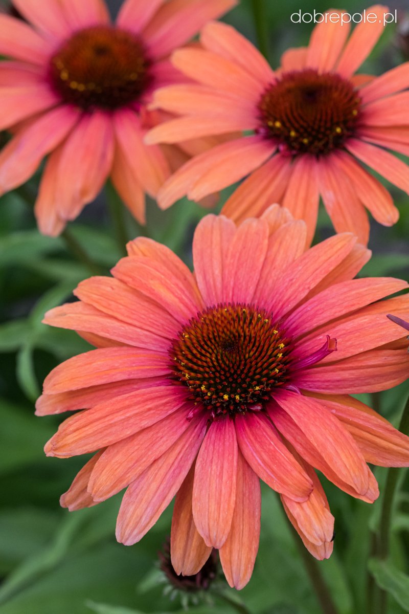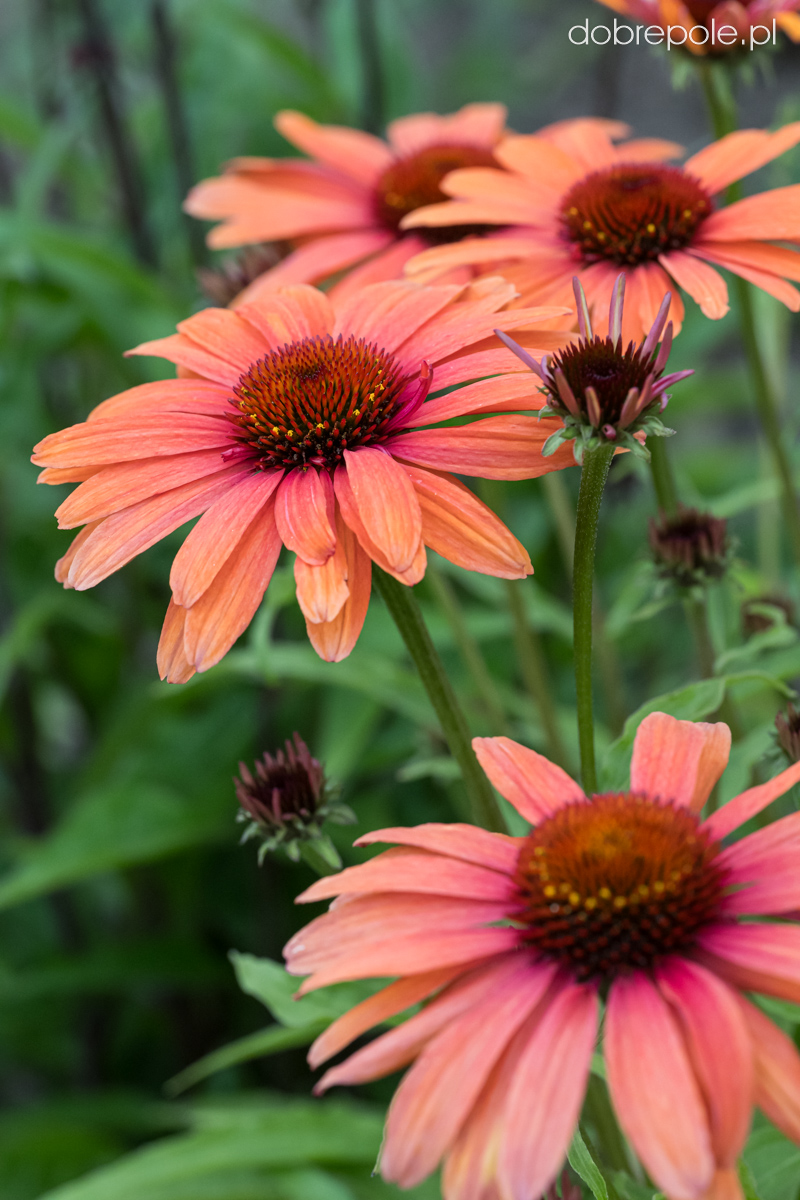 Rodzaj jeżówka obejmuje wiele gatunków i odmian wywodzących się od Echinacea purpurea, E. pallida, E. paradoxa, E. simulata oraz bardzo liczną, niezwykle atrakcyjną grupę odmian mieszańcowych. Wszystkie rośliny posiadają sztywno, wzniesione pędy, średnia wysokość tej byliny to 50-80 cm. Mimo tej wysokości jeżówka nie ma tendencji do pokładania się i w większości przypadków nie wymaga podparcia. Jajowate, spiczasto zaostrzone, ostro ząbkowane, ciemnozielone liście osadzone są na długich ogonkach. Cała roślina pokryta jest szorstkimi włoskami. Kwitnie od lipca do października. Wypukłe oczka przypominające kolce jeża, otoczone są kwiatami języczkowymi. W ogrodach uprawia się barwne odmiany, które różnią się terminem kwitnienia, wysokością, kształtem i kolorem kwiatów. Usuwanie przekwitniętych kwiatostanów przedłuża okres kwitnienia, który i tak jest bardzo długi. Jeżówka wabi motyle i pszczoły, a przede wszystkim przykuwa nasz wzrok pięknym, obfitym kwitnieniem oraz ciepłymi i żywymi barwami. Niektóre odmiany jeżówki pachną ("Purple Emperor" "Aloha", "Big Kahna", Tangerine Dream".) Zaschnięte kwiatostany tej rośliny przyozdabiają ogród również w okresie jesienno-zimowym. Echinacea jest jedną z ważniejszych bylin rabatowych w ogrodach, bardzo dobrze sprawdza się również na kwietnikach miejskich w mniejszych lub większych grupach, a także w założeniach naturalistycznych. Kwiaty nadają się do cięcia i długo pozostają dekoracyjne w wazonie. Niższe odmiany mogą być uprawiane w pojemnikach. Roślina bardzo dobrze komponuje się z innymi bylinami, a także z trawami np. miskantami, rozplenicą, ostnicą. Najlepiej sprawdza się na glebach dość żyznych, umiarkowanie wilgotnych. Preferuje stanowiska słoneczne.