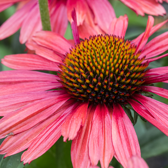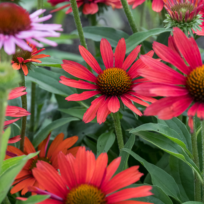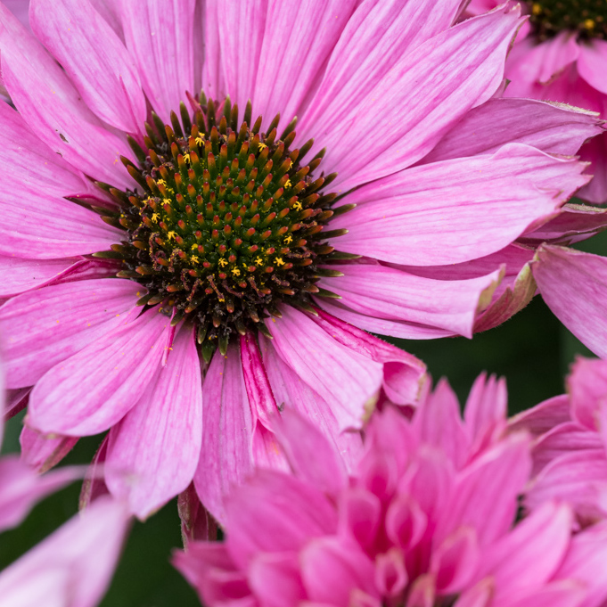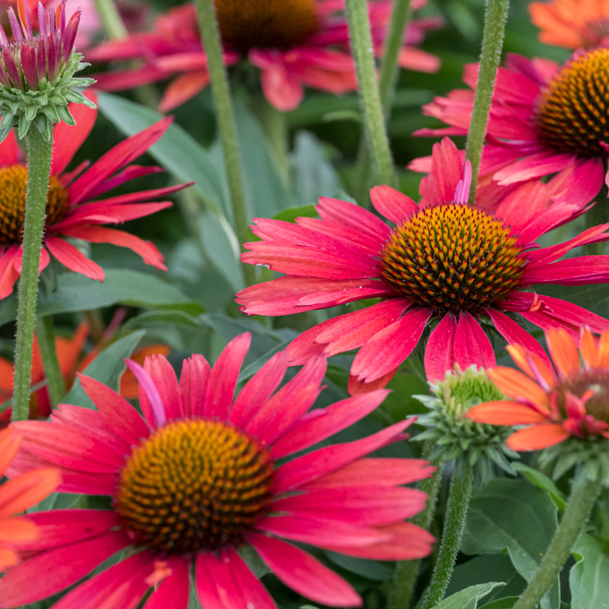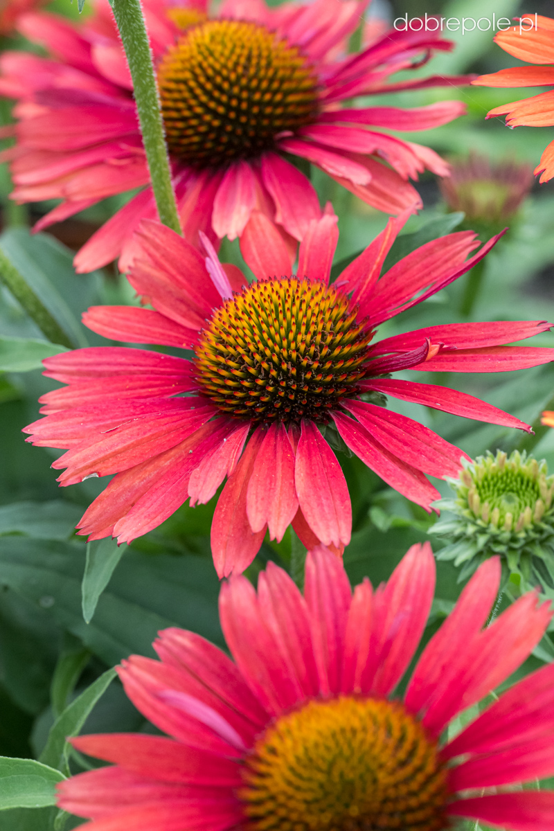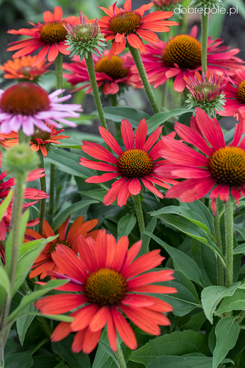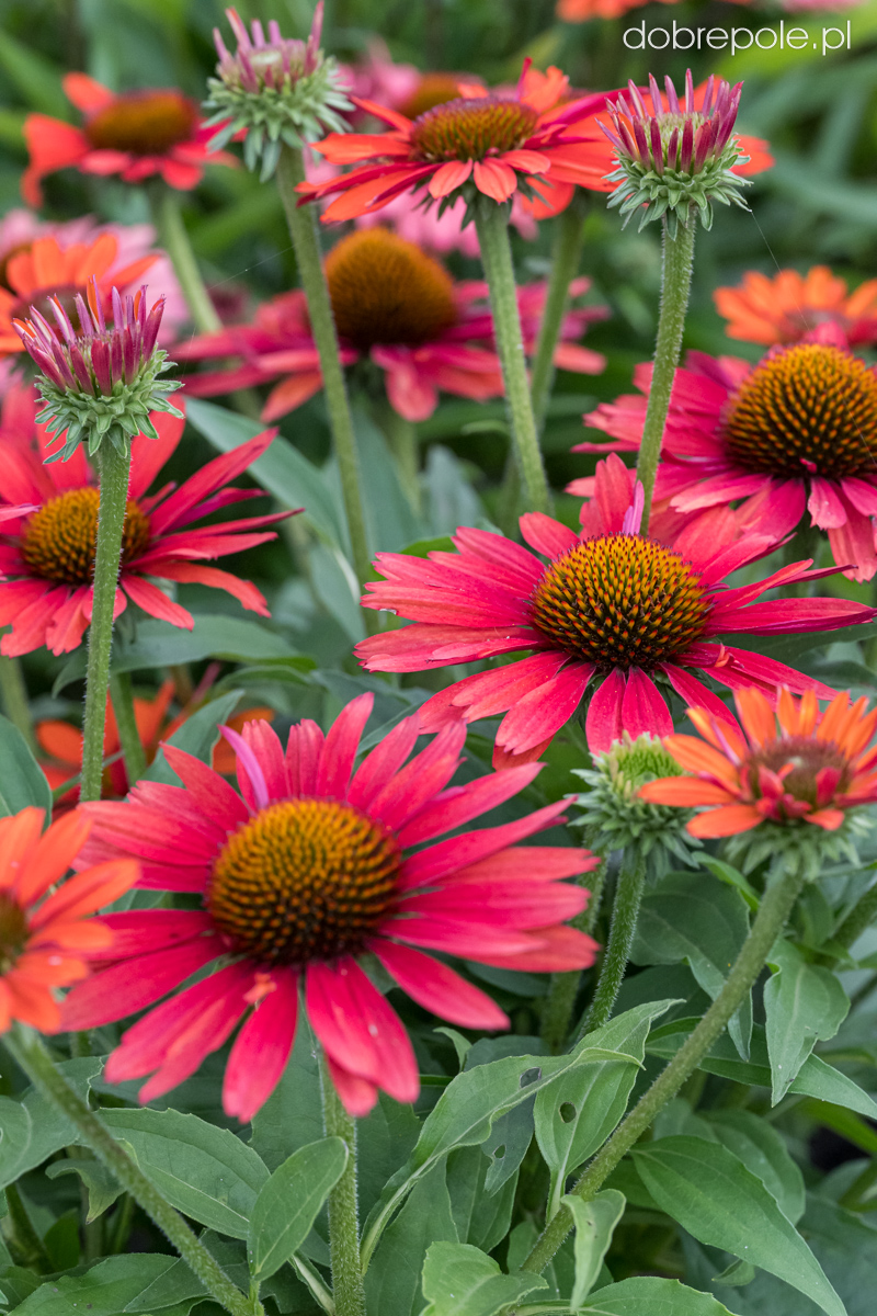 Rodzaj jeżówka obejmuje wiele gatunków i odmian wywodzących się od Echinacea purpurea, E. pallida, E. paradoxa, E. simulata oraz bardzo liczną, niezwykle atrakcyjną grupę odmian mieszańcowych. Wszystkie rośliny posiadają sztywno, wzniesione pędy, średnia wysokość tej byliny to 50-80 cm. Mimo tej wysokości jeżówka nie ma tendencji do pokładania się i w większości przypadków nie wymaga podparcia. Jajowate, spiczasto zaostrzone, ostro ząbkowane, ciemnozielone liście osadzone są na długich ogonkach. Cała roślina pokryta jest szorstkimi włoskami. Kwitnie od lipca do października. Wypukłe oczka przypominające kolce jeża, otoczone są kwiatami języczkowymi. W ogrodach uprawia się barwne odmiany, które różnią się terminem kwitnienia, wysokością, kształtem i kolorem kwiatów. Usuwanie przekwitniętych kwiatostanów przedłuża okres kwitnienia, który i tak jest bardzo długi. Jeżówka wabi motyle i pszczoły, a przede wszystkim przykuwa nasz wzrok pięknym, obfitym kwitnieniem oraz ciepłymi i żywymi barwami. Niektóre odmiany jeżówki pachną ("Purple Emperor" "Aloha", "Big Kahna", Tangerine Dream".) Zaschnięte kwiatostany tej rośliny przyozdabiają ogród również w okresie jesienno-zimowym. Echinacea jest jedną z ważniejszych bylin rabatowych w ogrodach, bardzo dobrze sprawdza się również na kwietnikach miejskich w mniejszych lub większych grupach, a także w założeniach naturalistycznych. Kwiaty nadają się do cięcia i długo pozostają dekoracyjne w wazonie. Niższe odmiany mogą być uprawiane w pojemnikach. Roślina bardzo dobrze komponuje się z innymi bylinami, a także z trawami np. miskantami, rozplenicą, ostnicą. Najlepiej sprawdza się na glebach dość żyznych, umiarkowanie wilgotnych. Preferuje stanowiska słoneczne.