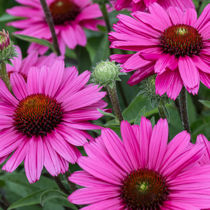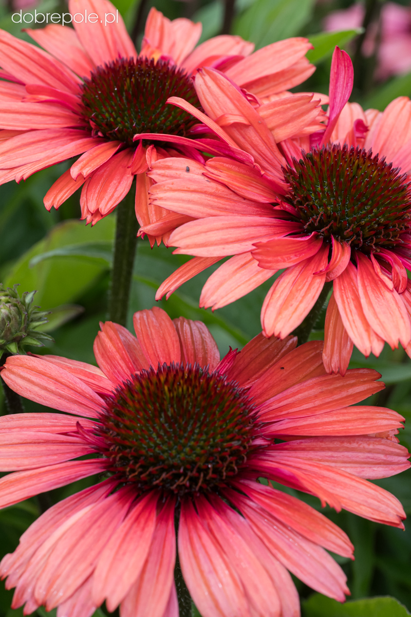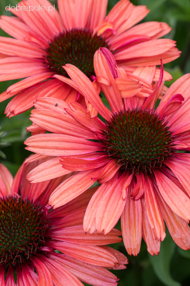 Rodzaj jeżówka obejmuje wiele gatunków i odmian wywodzących się od Echinacea purpurea, E. pallida, E. paradoxa, E. simulata oraz bardzo liczną, niezwykle atrakcyjną grupę odmian mieszańcowych. Wszystkie rośliny posiadają sztywno, wzniesione pędy, średnia wysokość tej byliny to 50-80 cm. Mimo tej wysokości jeżówka nie ma tendencji do pokładania się i w większości przypadków nie wymaga podparcia. Jajowate, spiczasto zaostrzone, ostro ząbkowane, ciemnozielone liście osadzone są na długich ogonkach. Cała roślina pokryta jest szorstkimi włoskami. Kwitnie od lipca do października. Wypukłe oczka przypominające kolce jeża, otoczone są kwiatami języczkowymi. W ogrodach uprawia się barwne odmiany, które różnią się terminem kwitnienia, wysokością, kształtem i kolorem kwiatów. Usuwanie przekwitniętych kwiatostanów przedłuża okres kwitnienia, który i tak jest bardzo długi. Jeżówka wabi motyle i pszczoły, a przede wszystkim przykuwa nasz wzrok pięknym, obfitym kwitnieniem oraz ciepłymi i żywymi barwami. Niektóre odmiany jeżówki pachną ("Purple Emperor" "Aloha", "Big Kahna", Tangerine Dream".) Zaschnięte kwiatostany tej rośliny przyozdabiają ogród również w okresie jesienno-zimowym. Echinacea jest jedną z ważniejszych bylin rabatowych w ogrodach, bardzo dobrze sprawdza się również na kwietnikach miejskich w mniejszych lub większych grupach, a także w założeniach naturalistycznych. Kwiaty nadają się do cięcia i długo pozostają dekoracyjne w wazonie. Niższe odmiany mogą być uprawiane w pojemnikach. Roślina bardzo dobrze komponuje się z innymi bylinami, a także z trawami np. miskantami, rozplenicą, ostnicą. Najlepiej sprawdza się na glebach dość żyznych, umiarkowanie wilgotnych. Preferuje stanowiska słoneczne.
