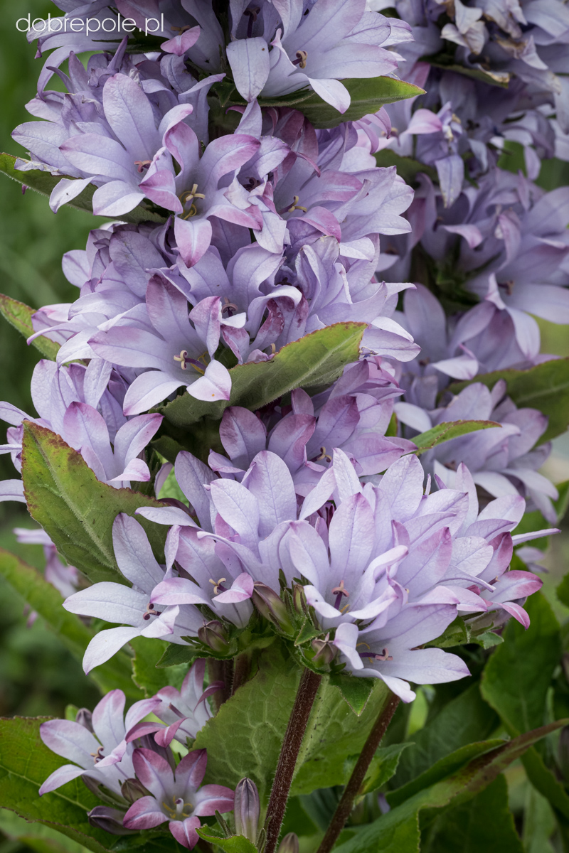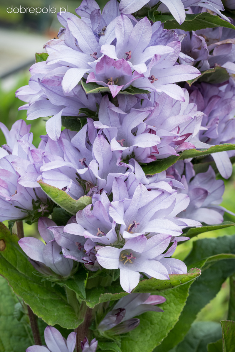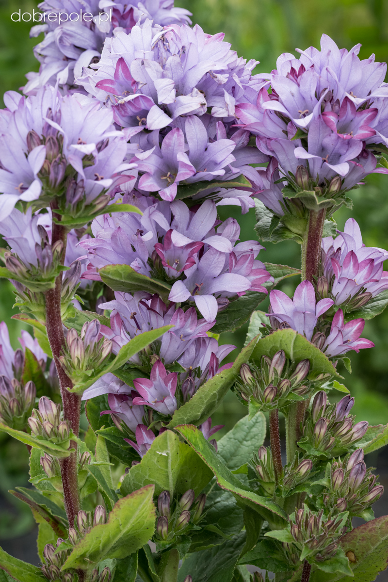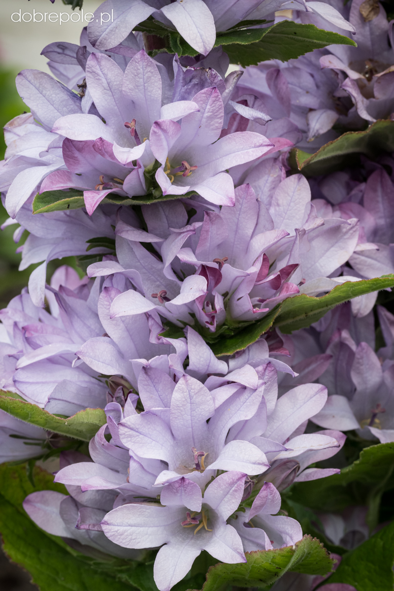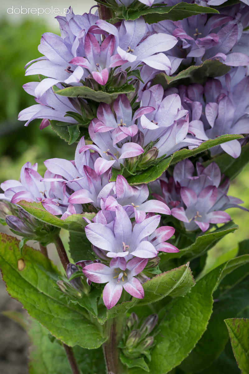 Dzwonek skupiony - oprócz gatunku w uprawie znajdują się odmiany, różniące się wysokością i kolorem kwiatów. Gatunek osiąga 50 cm wysokości, natomiast odmiany od 25-60 cm. Roślina rozrasta się niezbyt silnie dzięki podziemnym rozłogom. Liście odziomkowe ogonkowe oraz liście łodygowe siedzące, pokryte są ostrymi ciemnofioletowymi włoskami. Dzwonkowate, miododajne kwiaty osadzone w kątach górnych liści zebrane są w gęste, główkowate kwiatostany. Od czerwca do sierpnia dzwonek skupiony pokrywa się białymi lub ciemnofioletowymi kwiatami. Znany i lubiany dzwonek, często sadzony na rabatach i w ogrodach skalnych. Preferuje stanowiska ciepłe i nasłonecznione. Jeśli chodzi o glebę to najlepsze wyniki uzyskuje się na podłożu suchym lub średnio wilgotnym. Bylina poradzi sobie nawet na glebie bardzo ubogiej, nie zniesie natomiast zastoisk wodnych.
