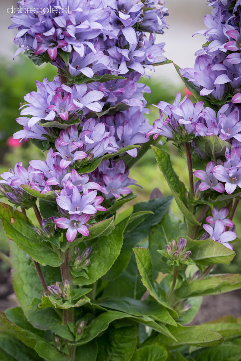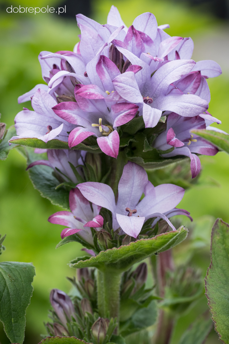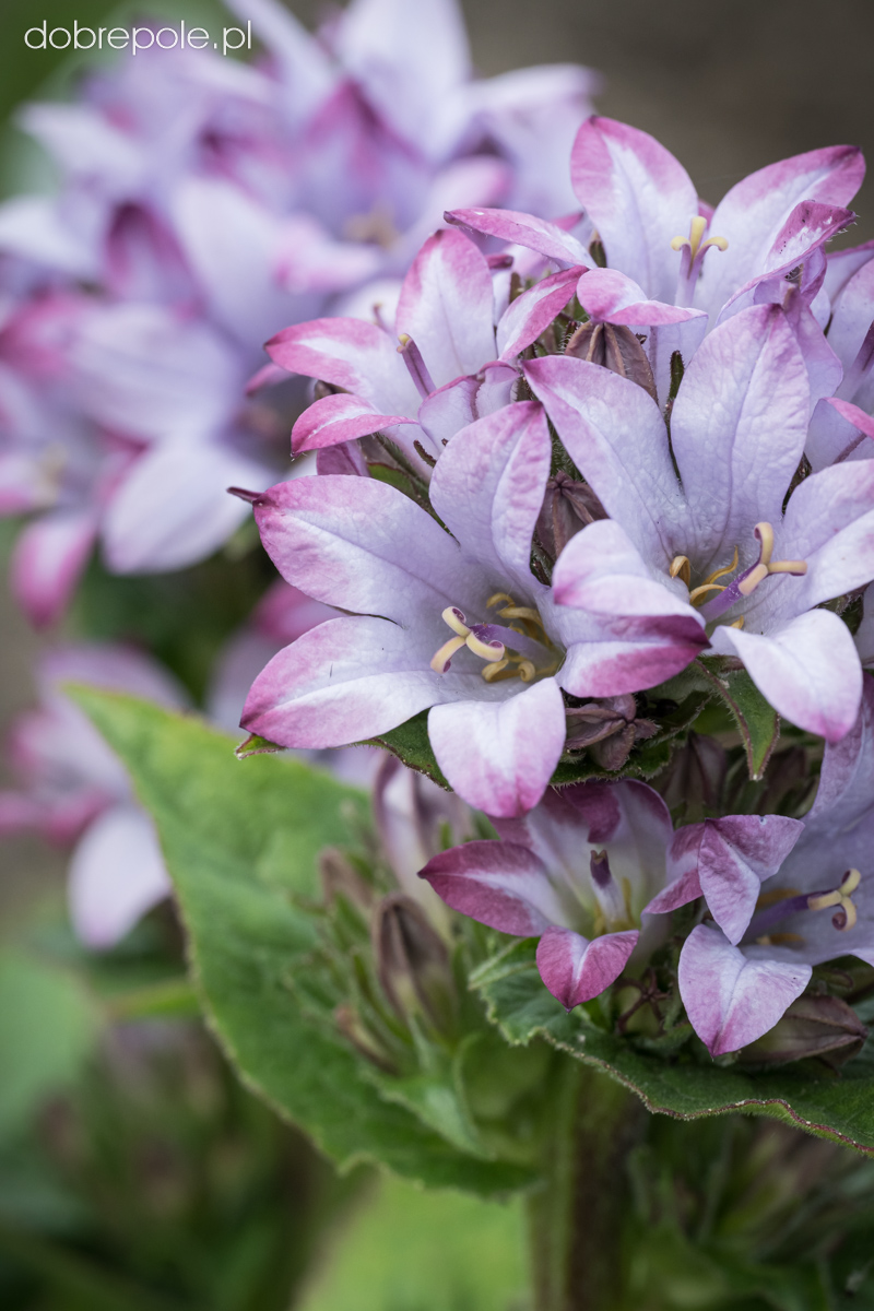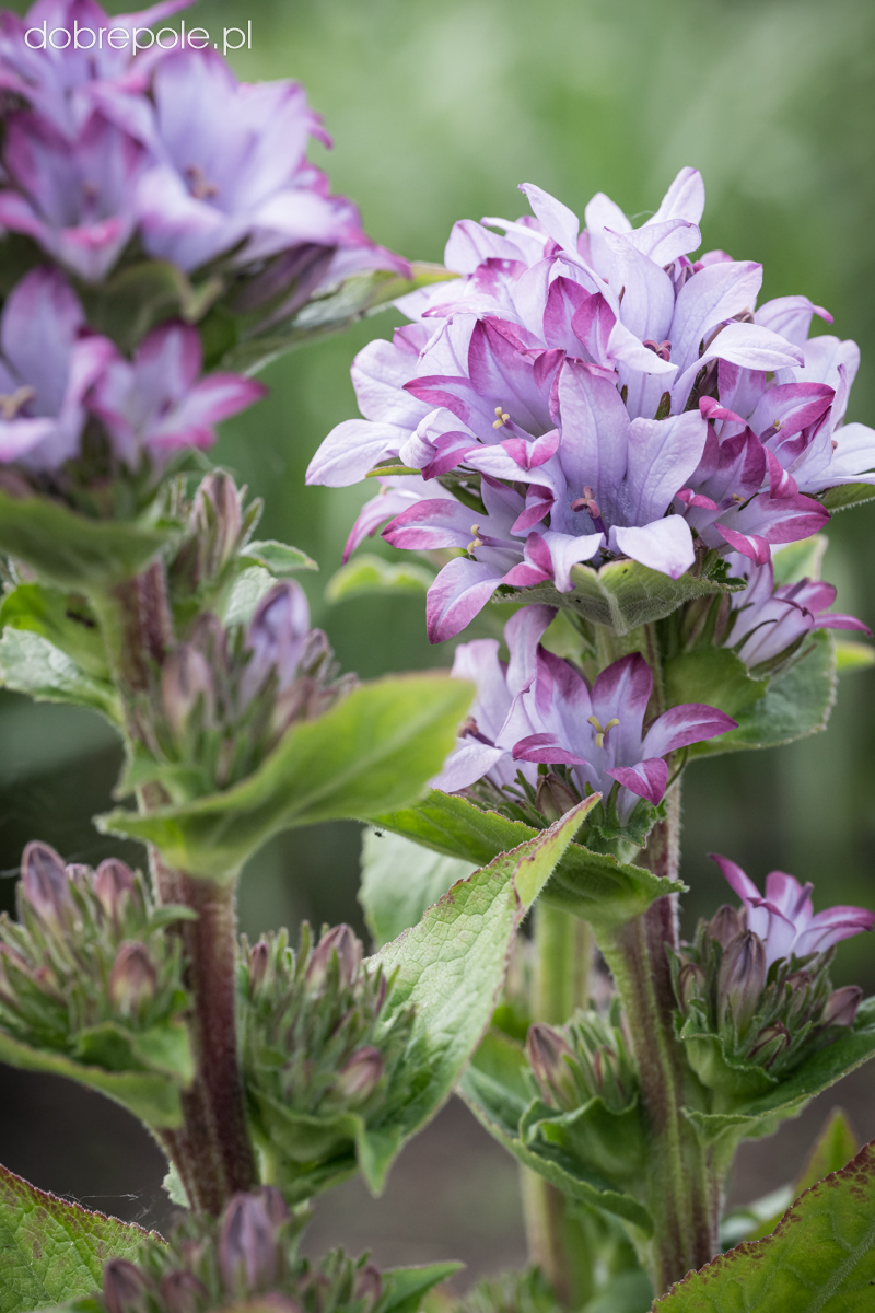 Dzwonek skupiony - oprócz gatunku w uprawie znajdują się odmiany, różniące się wysokością i kolorem kwiatów. Gatunek osiąga 50 cm wysokości, natomiast odmiany od 25-60 cm. Roślina rozrasta się niezbyt silnie dzięki podziemnym rozłogom. Liście odziomkowe ogonkowe oraz liście łodygowe siedzące, pokryte są ostrymi ciemnofioletowymi włoskami. Dzwonkowate, miododajne kwiaty osadzone w kątach górnych liści zebrane są w gęste, główkowate kwiatostany. Od czerwca do sierpnia dzwonek skupiony pokrywa się białymi lub ciemnofioletowymi kwiatami. Znany i lubiany dzwonek, często sadzony na rabatach i w ogrodach skalnych. Preferuje stanowiska ciepłe i nasłonecznione. Jeśli chodzi o glebę to najlepsze wyniki uzyskuje się na podłożu suchym lub średnio wilgotnym. Bylina poradzi sobie nawet na glebie bardzo ubogiej, nie zniesie natomiast zastoisk wodnych.