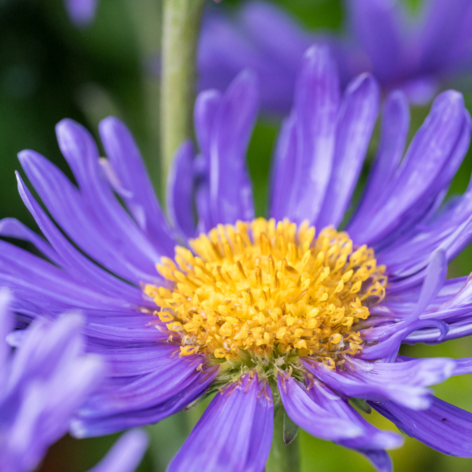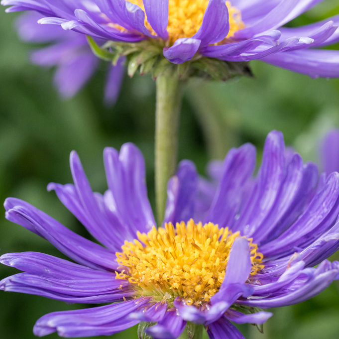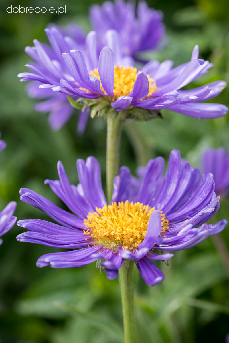 Aster alpejski to niewielka bylina tworząca rozety z szarozielonych liści, z których wyrastają wyprostowane, skąpo ulistnione pędy. Na wierzchołkach łodyg w maju i czerwcu pojawiają się pojedyncze, dość duże koszyczki kwiatowe o białych, różowych lub fioletowych kwiatach języczkowych i żółtych kwiatach rurkowatych. Kwiaty mogą być pojedyncze lub pełne, nadają się do cięcia. Roślina osiąga wysokość ok. 30 cm. Aster alpejski preferuje stanowiska słoneczne. Wymaga gleby żyznej, przepuszczalnej, wapiennej. Nadaje się do wysadzania na rabatach, w ogródkach skalnych w grupach po 3-10 szt.