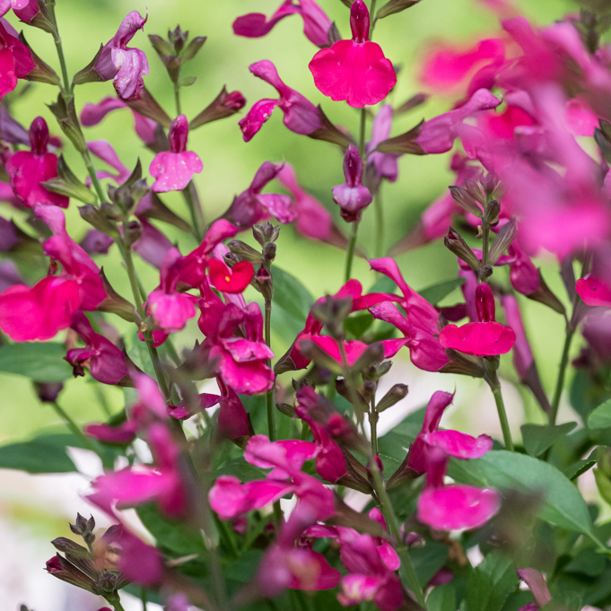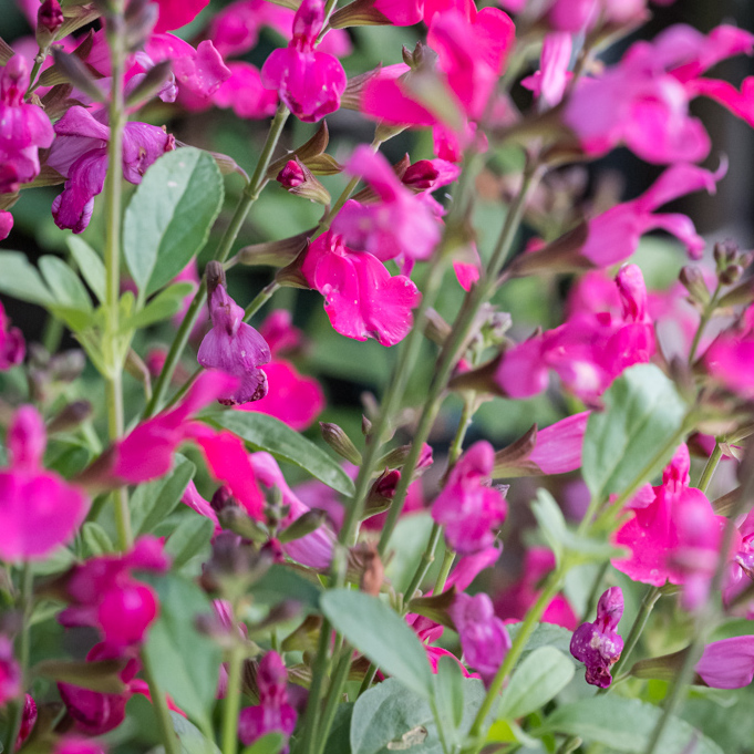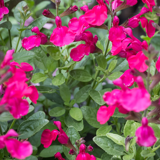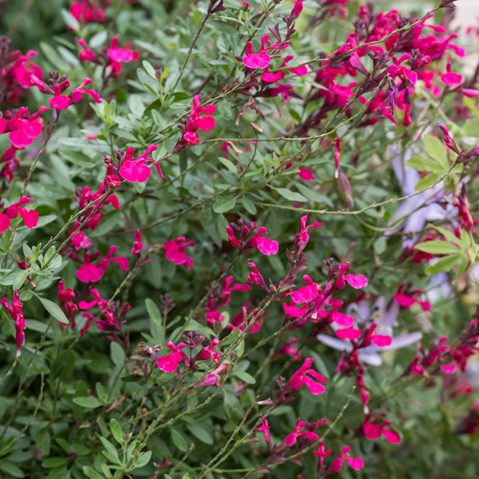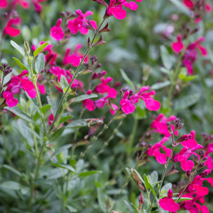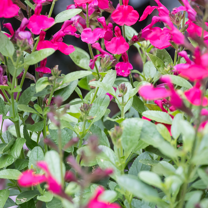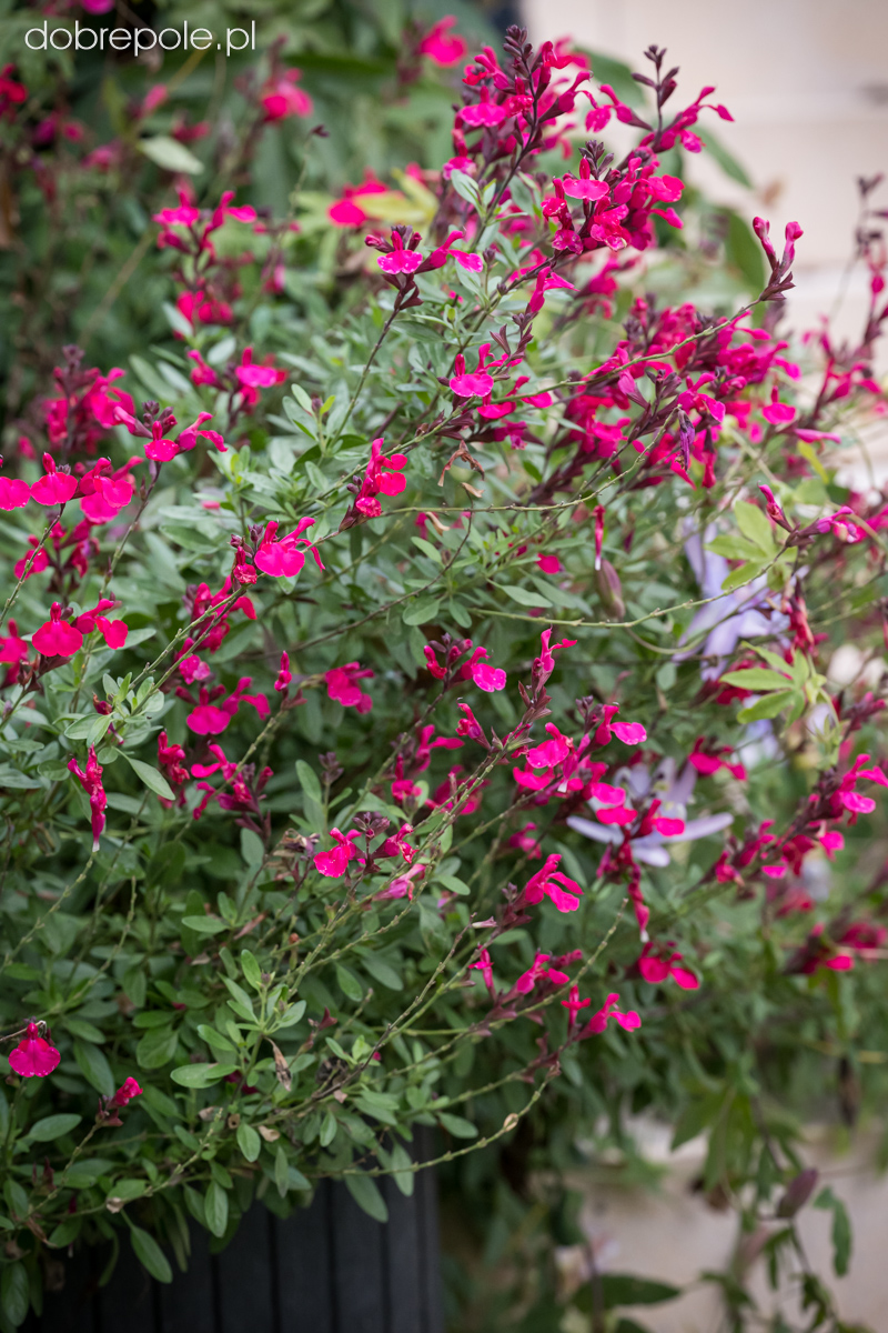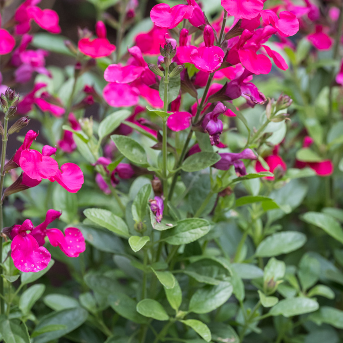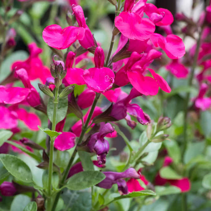 Szałwia mieszańcowa pochodzi ze skrzyżowania najprawdopodobniej Salvia gaurantica x Salvia gesnerifolia. Wytwarza wyprostowane, sztywne i mocno rozgałęziające się pędy, które tworzą półkoliste kępy dochodzące do 90 cm wysokości. Liście jajowate z wydłużonymi, ostrymi wierzchołkami, na brzegu drobno piłkowane. Ponad kępą liści, na bordowo nabiegłych szczytach pędów rozwijają się piękne, duże fioletowo-niebieskie kwiaty z długimi kremowymi pręcikami, zebrane w okółki o długości nawet 15 cm. Roślina roztacza przyjemny zapach, przyciąga pszczoły i motyle. Kwitnie od maja do września. Usuwanie przekwitniętych kwiatostanów stymuluje kwitnienie. Preferuje miejsca słoneczne, ciepłe i zaciszne. Lubi podłoże zasobne w składniki próchniczne, lekkie i przynajmniej umiarkowanie, stale wilgotne. Odmiana "Amistad" przepięknie kwitnie, w naszej strefie polecana głównie do uprawy pojemnikowej.