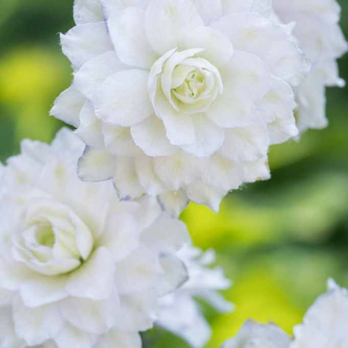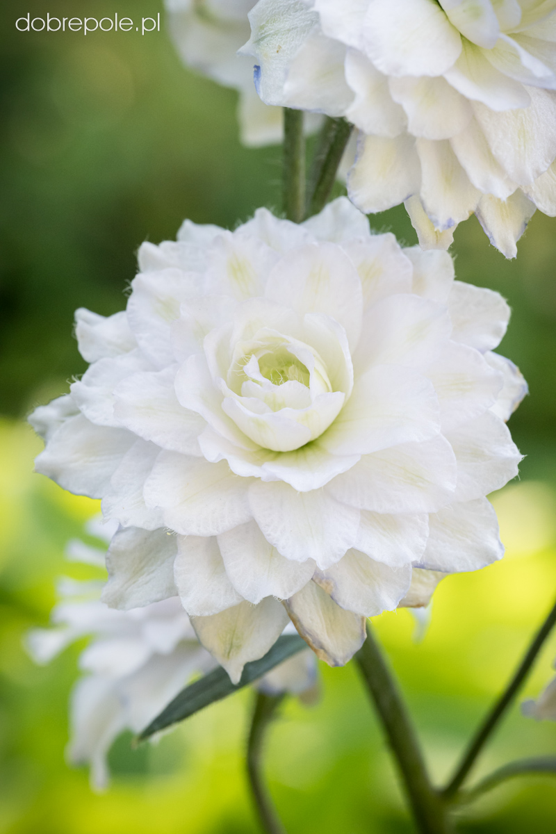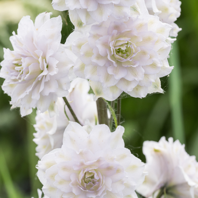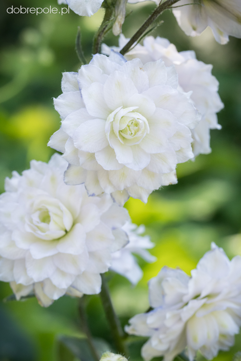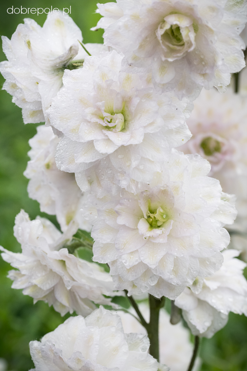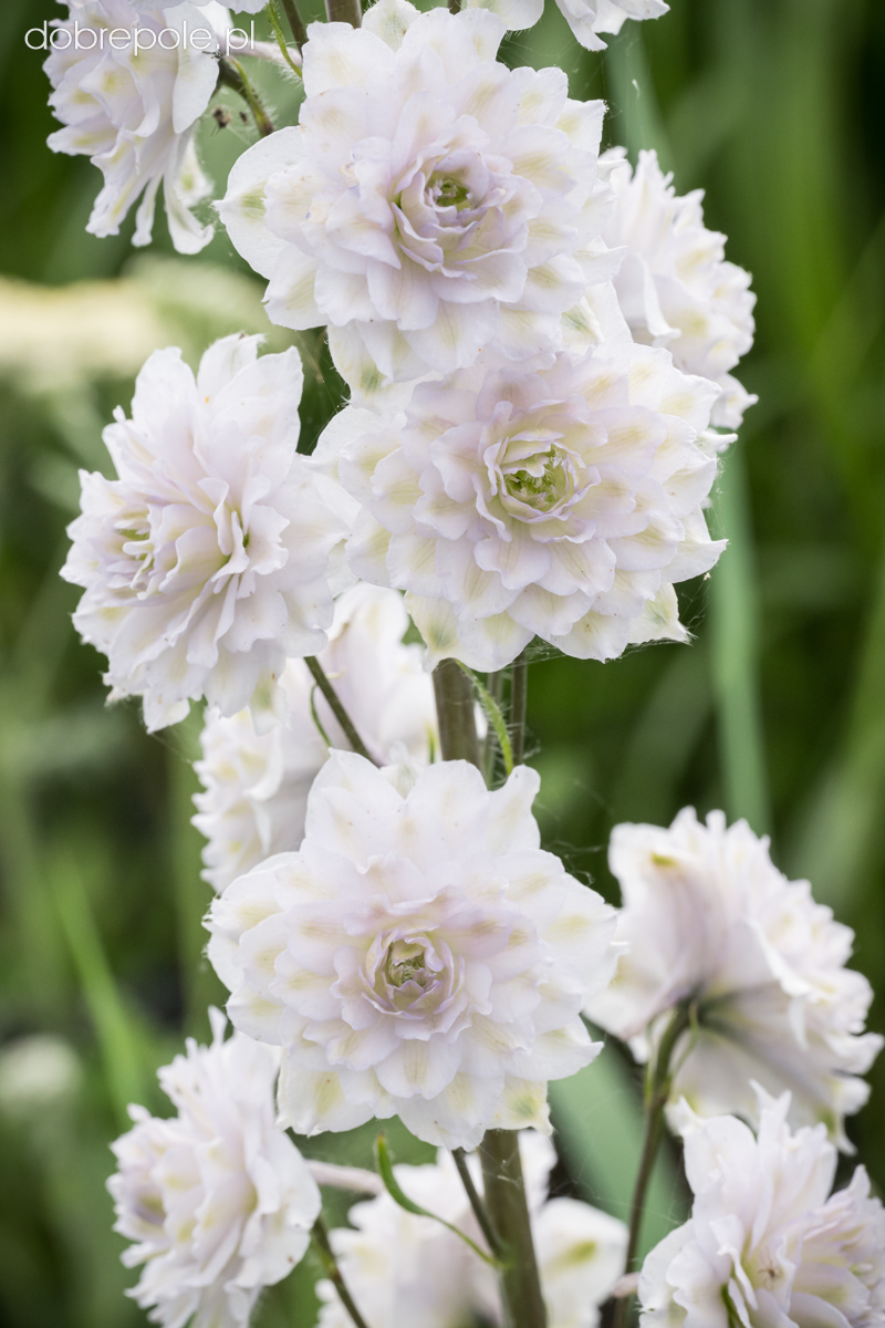 Ostróżki będące mieszańcami międzygatunkowymi to imponujące byliny, o niepowtarzalnych kwiatach, zaopatrzonych w ostrogę. W zależności od odmiany rośliny osiągają wysokość 70-180 cm. Pędy sztywne, wzniesione, gęsto ulistnione z wierzchołkowymi kwiatostanami, które dorastają nawet do metrowej długości. Wysokie odmiany wymagają podpór, zapobiegających ich pokładaniu, szczególnie po ulewnych deszczach i silnych wiatrach. Pojedyncze, duże kwiaty ostróżki osiągają średnicę nawet do ok. 5 cm, w zależności od odmiany są one białe, zielonkawe, w różnych odcieniach niebieskiego, różowego, fioletowego, mogą być pojedyncze lub pełne, często dwubarwne z innym zabarwieniem oczka. Roślina przycięta po pierwszym przekwitnięciu na wysokości 10-15 cm wypuszcza nowe pędy, które przyniosą jesienią nowe kwiaty. Wszystkie odmiany mieszańcowe wymagają żyznej, głęboko uprawionej, pulchnej gleby, umiarkowanie wilgotnej w sezonie, lecz nie zalewanej podczas zimy. Polecane do sadzenia w grupach na rabatach, przy murach, płotach, w ogrodach naturalistycznych, na stanowiskach słonecznych i półcienistych. Bardzo okazale prezentują się ścięte i umieszczone w wazonie.