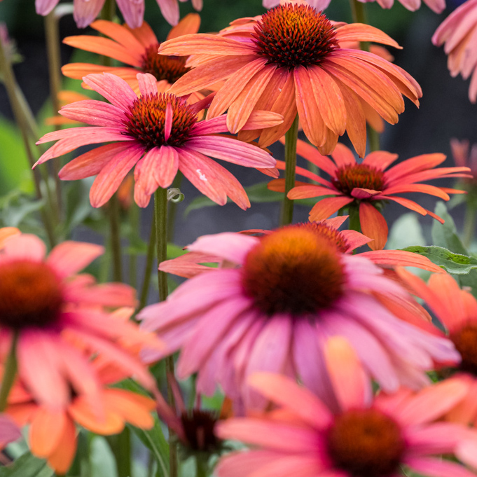 Rodzaj jeżówka obejmuje wiele gatunków i odmian wywodzących się od Echinacea purpurea, E. pallida, E. paradoxa, E. simulata oraz bardzo liczną, niezwykle atrakcyjną grupę odmian mieszańcowych. Wszystkie rośliny posiadają sztywno, wzniesione pędy, średnia wysokość tej byliny to 50-80 cm. Mimo tej wysokości jeżówka nie ma tendencji do pokładania się i w większości przypadków nie wymaga podparcia. Jajowate, spiczasto zaostrzone, ostro ząbkowane, ciemnozielone liście osadzone są na długich ogonkach. Cała roślina pokryta jest szorstkimi włoskami. Kwitnie od lipca do października. Wypukłe oczka przypominające kolce jeża, otoczone są kwiatami języczkowymi. W ogrodach uprawia się barwne odmiany, które różnią się terminem kwitnienia, wysokością, kształtem i kolorem kwiatów. Usuwanie przekwitniętych kwiatostanów przedłuża okres kwitnienia, który i tak jest bardzo długi. Jeżówka wabi motyle i pszczoły, a przede wszystkim przykuwa nasz wzrok pięknym, obfitym kwitnieniem oraz ciepłymi i żywymi barwami. Niektóre odmiany jeżówki pachną ("Purple Emperor" "Aloha", "Big Kahna", Tangerine Dream".) Zaschnięte kwiatostany tej rośliny przyozdabiają ogród również w okresie jesienno-zimowym. Echinacea jest jedną z ważniejszych bylin rabatowych w ogrodach, bardzo dobrze sprawdza się również na kwietnikach miejskich w mniejszych lub większych grupach, a także w założeniach naturalistycznych. Kwiaty nadają się do cięcia i długo pozostają dekoracyjne w wazonie. Niższe odmiany mogą być uprawiane w pojemnikach. Roślina bardzo dobrze komponuje się z innymi bylinami, a także z trawami np. miskantami, rozplenicą, ostnicą. Najlepiej sprawdza się na glebach dość żyznych, umiarkowanie wilgotnych. Preferuje stanowiska słoneczne.