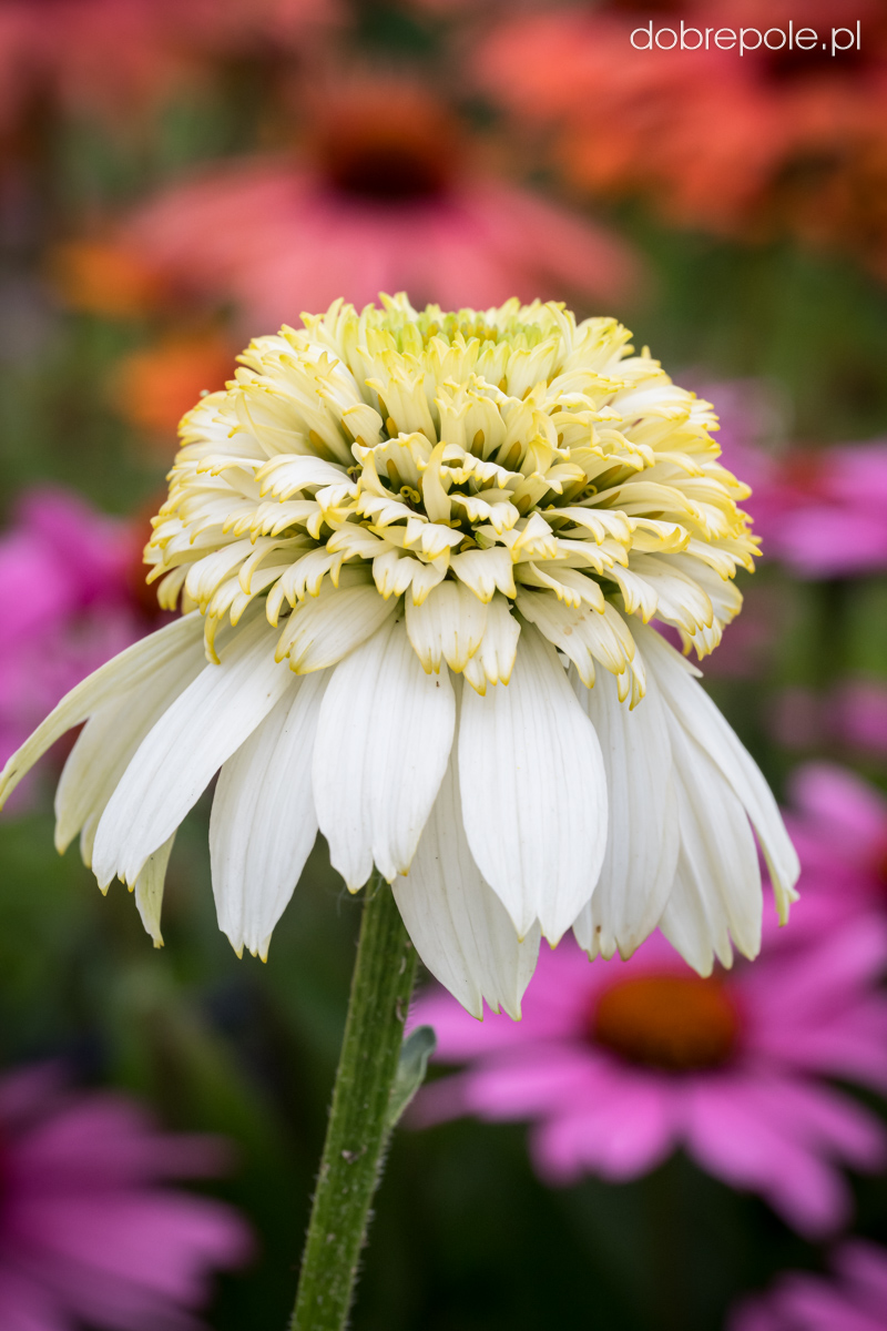 Rodzaj jeżówka obejmuje wiele gatunków i odmian wywodzących się od Echinacea purpurea, E. pallida, E. paradoxa, E. simulata oraz bardzo liczną, niezwykle atrakcyjną grupę odmian mieszańcowych. Wszystkie rośliny posiadają sztywno, wzniesione pędy, średnia wysokość tej byliny to 50-80 cm. Mimo tej wysokości jeżówka nie ma tendencji do pokładania się i w większości przypadków nie wymaga podparcia. Jajowate, spiczasto zaostrzone, ostro ząbkowane, ciemnozielone liście osadzone są na długich ogonkach. Cała roślina pokryta jest szorstkimi włoskami. Kwitnie od lipca do października. Wypukłe oczka przypominające kolce jeża, otoczone są kwiatami języczkowymi. W ogrodach uprawia się barwne odmiany, które różnią się terminem kwitnienia, wysokością, kształtem i kolorem kwiatów. Usuwanie przekwitniętych kwiatostanów przedłuża okres kwitnienia, który i tak jest bardzo długi. Jeżówka wabi motyle i pszczoły, a przede wszystkim przykuwa nasz wzrok pięknym, obfitym kwitnieniem oraz ciepłymi i żywymi barwami. Niektóre odmiany jeżówki pachną ("Purple Emperor" "Aloha", "Big Kahna", Tangerine Dream".) Zaschnięte kwiatostany tej rośliny przyozdabiają ogród również w okresie jesienno-zimowym. Echinacea jest jedną z ważniejszych bylin rabatowych w ogrodach, bardzo dobrze sprawdza się również na kwietnikach miejskich w mniejszych lub większych grupach, a także w założeniach naturalistycznych. Kwiaty nadają się do cięcia i długo pozostają dekoracyjne w wazonie. Niższe odmiany mogą być uprawiane w pojemnikach. Roślina bardzo dobrze komponuje się z innymi bylinami, a także z trawami np. miskantami, rozplenicą, ostnicą. Najlepiej sprawdza się na glebach dość żyznych, umiarkowanie wilgotnych. Preferuje stanowiska słoneczne.
