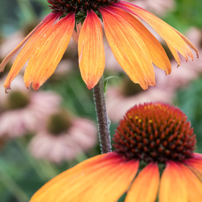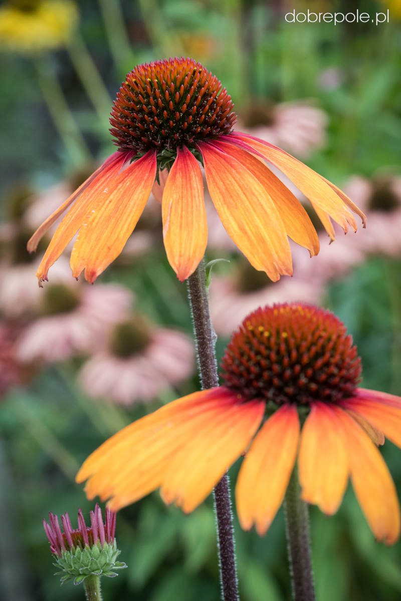 Rodzaj jeżówka obejmuje wiele gatunków i odmian wywodzących się od Echinacea purpurea, E. pallida, E. paradoxa, E. simulata oraz bardzo liczną, niezwykle atrakcyjną grupę odmian mieszańcowych. Wszystkie rośliny posiadają sztywno, wzniesione pędy, średnia wysokość tej byliny to 50-80 cm. Mimo tej wysokości jeżówka nie ma tendencji do pokładania się i w większości przypadków nie wymaga podparcia. Jajowate, spiczasto zaostrzone, ostro ząbkowane, ciemnozielone liście osadzone są na długich ogonkach. Cała roślina pokryta jest szorstkimi włoskami. Kwitnie od lipca do października. Wypukłe oczka przypominające kolce jeża, otoczone są kwiatami języczkowymi. W ogrodach uprawia się barwne odmiany, które różnią się terminem kwitnienia, wysokością, kształtem i kolorem kwiatów. Usuwanie przekwitniętych kwiatostanów przedłuża okres kwitnienia, który i tak jest bardzo długi. Jeżówka wabi motyle i pszczoły, a przede wszystkim przykuwa nasz wzrok pięknym, obfitym kwitnieniem oraz ciepłymi i żywymi barwami. Niektóre odmiany jeżówki pachną ("Purple Emperor" "Aloha", "Big Kahna", Tangerine Dream".) Zaschnięte kwiatostany tej rośliny przyozdabiają ogród również w okresie jesienno-zimowym. Echinacea jest jedną z ważniejszych bylin rabatowych w ogrodach, bardzo dobrze sprawdza się również na kwietnikach miejskich w mniejszych lub większych grupach, a także w założeniach naturalistycznych. Kwiaty nadają się do cięcia i długo pozostają dekoracyjne w wazonie. Niższe odmiany mogą być uprawiane w pojemnikach. Roślina bardzo dobrze komponuje się z innymi bylinami, a także z trawami np. miskantami, rozplenicą, ostnicą. Najlepiej sprawdza się na glebach dość żyznych, umiarkowanie wilgotnych. Preferuje stanowiska słoneczne.