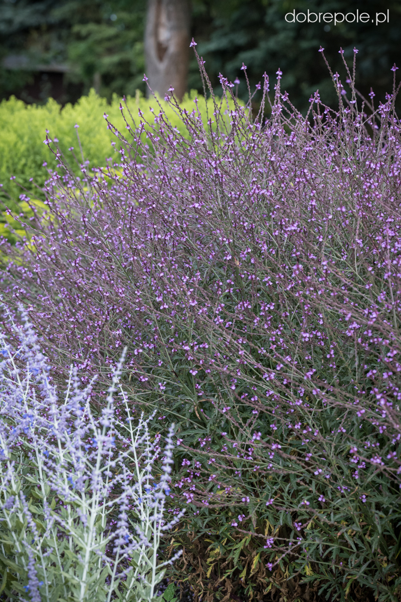 Werbena patagońska mimo, że jest rośliną wieloletnią, w polskich warunkach klimatycznych musimy traktować ją, jako roślinę jednoroczną. Do niedawna nieznana, obecnie robi furorę wśród architektów zieleni i właścicieli ogrodów. Tworzy luźne, delikatne, zwiewne kępy wzniesionych, owłosionych pędów dorastających do 150 cm wysokości. W uprawach pojawiły się także odmiany, które są niskie i dorastają do 60 cm. Największe zainteresowanie budzi jednak gatunek. Na szczytach cienkich pędów w lipcu pojawiają różowo-liliowe kwiatki zebrane w nieduże główki, które przyozdabiają roślinę do końca jesieni, a także zimą kiedy nadal są ozdobą ogrodu. Roślina zwabia pszczoły i kolorowe motyle. Ma wielorakie zastosowanie. Dzięki lekkiemu pokrojowi roślinę możemy wysadzać w dowolnym miejscu ogrodu. Werbena doskonale się sprawdza w połączeniu z innymi roślinami np. białymi, różowymi jeżówkami, białymi gaurami, zawilcami japońskimi, żółtymi rudbekiami, nachyłkami lub trawami np. stipą, rozplenicą. Wspaniale prezentuje się w dużych grupach na tle wysokich miskantów lub trzcinników. Werbeny można też wysadzać wzdłuż chodników, ogrodzeń lub ścian budynków. Świetnie sprawdzają się w założeniach naturalistycznych, na łąkach kwietnych. Roślina preferuje stanowiska słoneczne, gleby żyzne, próchnicze, przepuszczalne, lekko wilgotne. Bardzo dobrze znosi przejściową suszę.